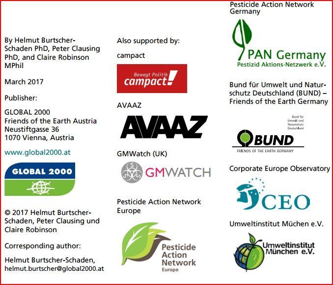 Un consortium a publié un document de 72 pages, « Glyphosate and cancer: Buying science – How industry strategized (and regulators colluded) in an attempt to save the world’s most widely used herbicide from a ban » (glyphosate et cancer : l'achat de la science – La stratégie de l'industrie (et la collusion des régulateurs) dans une tentative de sauver l'herbicide le plus largement utilisé dans le monde d'une interdiction). Les auteurs ? Helmut Burtscher-Schaden, Peter Clausing et Claire Robinson. Cette dernière nous est familière : directrice de publication de GM Watch, elle est aussi impliquée dans des sites satellites comme GMOSeralini. Vingt pages sur 48 sont consacrées aux « conflits d'intérêts ». Rassurez-vous : il n'y a rien sur Christopher Portier... Pour le reste, rien de bien nouveau. Sur le fond, on ne sort guère des controverses sur la valeur des différentes études invoquées à l'appui de la thèse de la cancérogénicité, sur l'interprétation à donner au principe du poids de la preuve, sur la différence entre danger et risque.