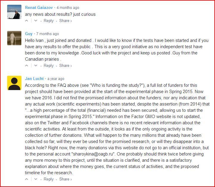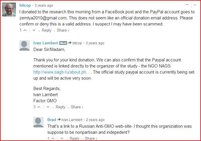 À la base de l'initiative, une ONG russe, l'Association Nationale pour la Sécurité Génétique (National Association for Genetic Safety – NAGS). C'est une association d'une parfaite neutralité et objectivité, sans parti pris... pensez donc... elle annonce sur son site avoir mené en 2008 une recherche en partenariat avec l'Institut A.N. Severtsov d'Écologie et d'Évolution de l'Académie Russe des Sciences qui a montré que des hamsters nourris avec du soja GM étaient incapables de produire une troisième génération...