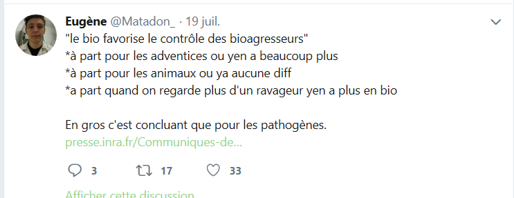 Il faudrait vérifier l'ensemble des études utilisées (bis). Qu'a-t-on comparé ? Un itinéraire biologique idéal et un itinéraire conventionnel de sagouin ?