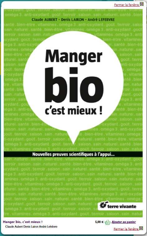 Sachant par ailleurs que le bio utilise aussi des pesticides (quelques fois plus que le conventionnel !), que c'est bien moins productif, que c'est beaucoup plus cher et que le bénéfice éventuel lié à une réduction des cas de cancer est susceptible d'être plus que contrebalancé par l'augmentation des problèmes de santé liée à une moindre consommation de fruits et légumes.
