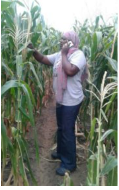 Patience inspectant un de ses champs de maïs au Nigeria.