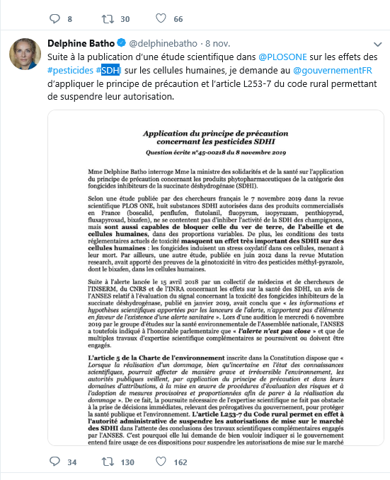 L'article scientifique est publié le 7 novembre 2019... la question écrite au gouvernement est datée du 8... Mme Delphine Batho doit avoir un staff d'une extraordinaire compétence...