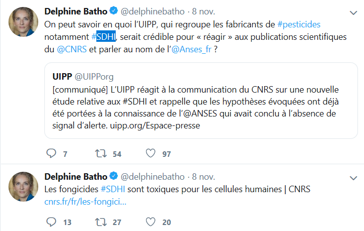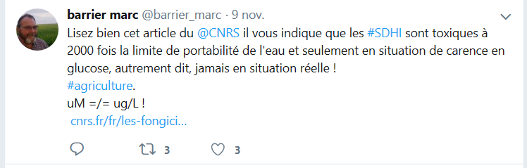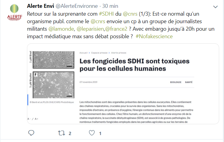Le Centre National de la Recherche Scientifique (CNRS) a publié le 7 novembre 2019 « Les fongicides SDHI sont toxiques pour les cellules humaines », un communiqué de presse au titre anxiogène et se composant d'un seul paragraphe.