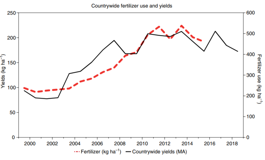 Kranthi et Stone notent : « Les augmentations de rendement correspondent aux changements dans les engrais et autres intrants. » M. de la Palice ! Les plantes ne vivent pas d'amour et d'eau fraîche (sauf dans certaines visions de l'agronomie de canapé ou « agro-écologie »)... Leurs graphiques sont de ce point de vue éloquents.